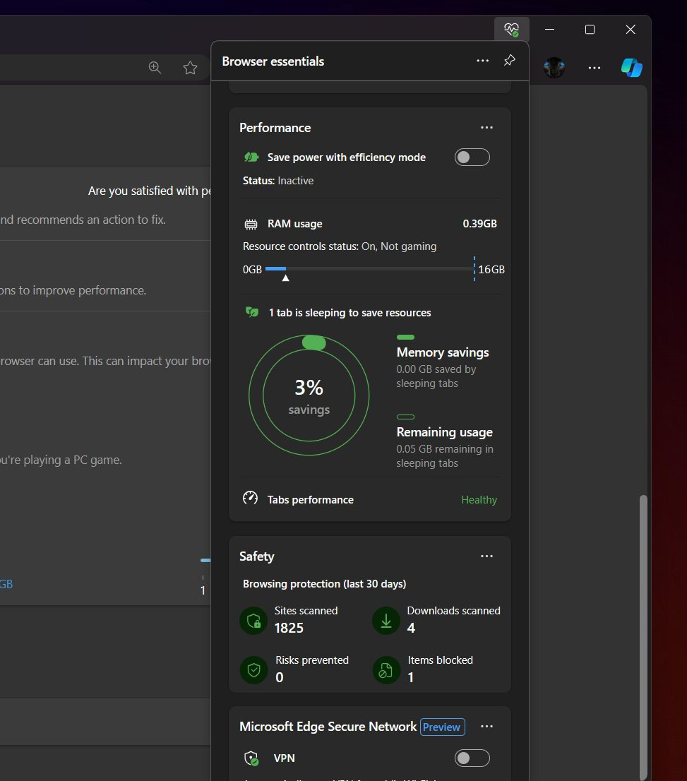 Некоторые браузеры уже довольно давно позволяют использовать функционал ограничения использования оперативной памяти, а сейчас пользователь Twitter Leopeva64 сообщает, что свежий инсайдерский билд Microsoft Edge также получил аналогичный функционал. Ограничение использования оперативной памяти браузером осуществляется обычным слайдером, а также можно настроить автоматизацию, которая позволит включать данную опцию исключительно во время игровых сессий. Данная опция определенно пригодится пользователям с малым количеством оперативной памяти. Уточним, что в Chrome изначально есть опция "экономии памяти", но пользы от нее почти нет. В данный момент у нас нет информации о сроках добавления описанного функционала в релизную версию браузера.