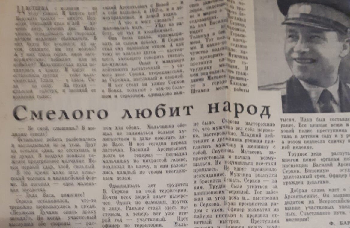 Одиннадцать лет трудится Василий Серков на этой территории. Почти всех людей знает наперечет. Одних по фамилии, других в лицо. Раньше стоял здесь постовым, а теперь вот уже второй год - участковый. Идет офицер по территории. Мальчишки смотрят на него с завистью, старики низко кланяются. И действительно, есть за что уважать этого человека. Вспомните хотя бы случай, который произошел прошлой осенью.