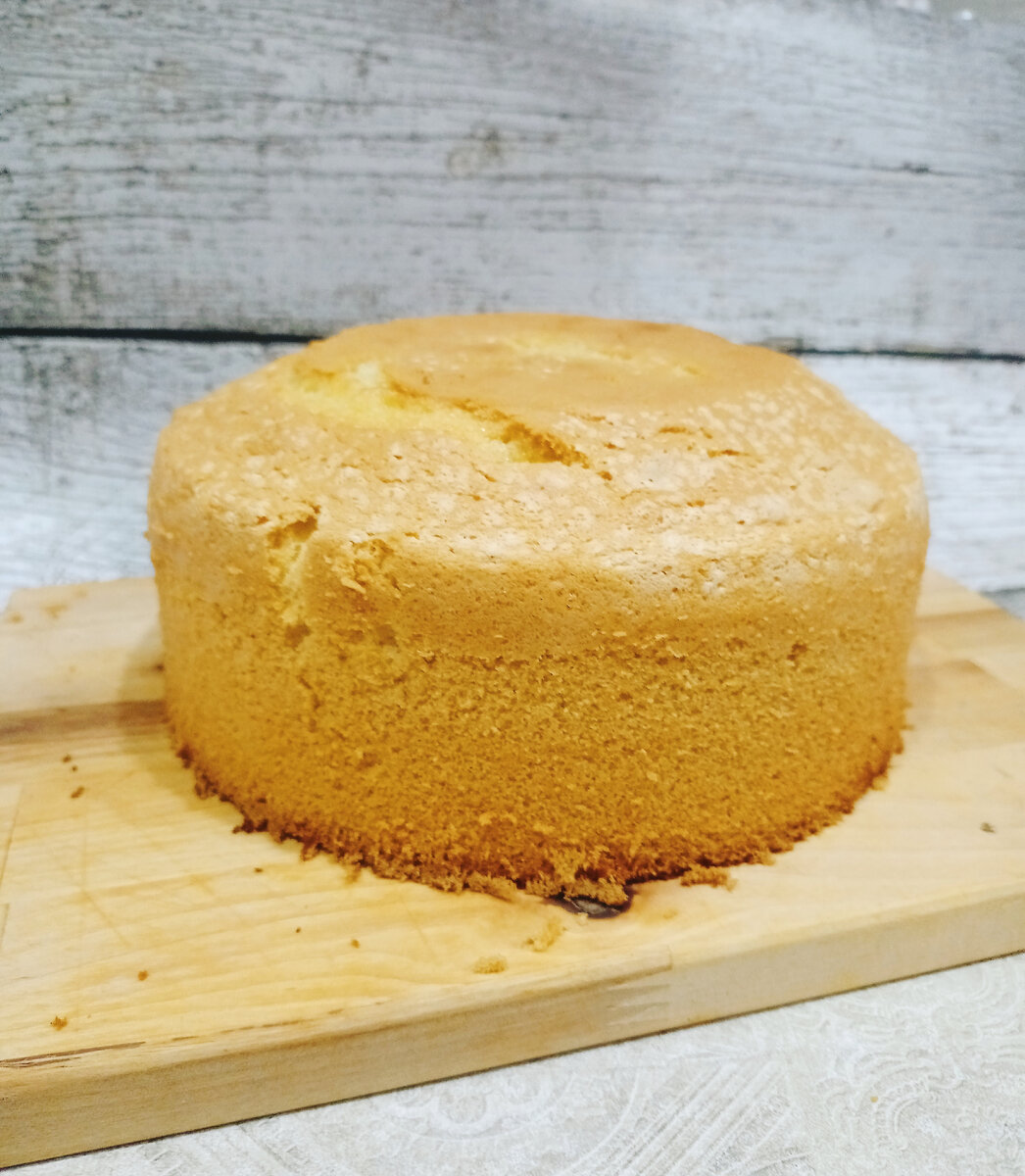 Бисквит по этому рецепту получится у любого и никаких проблем с ним не возникнет. Он получается лёгким , воздушным и очень нежным . Этот рецепт отличается от классического , тем что не нужно отделять яичные белки от желтков и долго взбивать. Здесь этого не нужно и результат превосходит все ожидания . Ингридиенты : Для формы диаметром 20-22 см я беру: • яйца 5 шт • сахар 200 гр • мука 200 гр • разрыхлитель 1 ч.л. Приступаем к приготовлению бисквита. Разбиваем яйца в глубокую посуду,добавляем сахар. Взбиваем миксером до образования пышной светлой густой массы( белки с сахаром должны увеличиться в объеме и посветлеть.) Взбиваем сначало на маленькой скорости, затем постепенно увеличиваем скорость до максимальной .Смотрим на консистенцию пены ,если посветлела и увеличилась в объеме ,значит готово и можно добавлять муку.Муку необходимо просеять перед тем как ввести ее в тесто, тогда мука насытится кислородом и бисквит будет воздушным. Муку вводим постепенно во взбитые яйца с сахар
