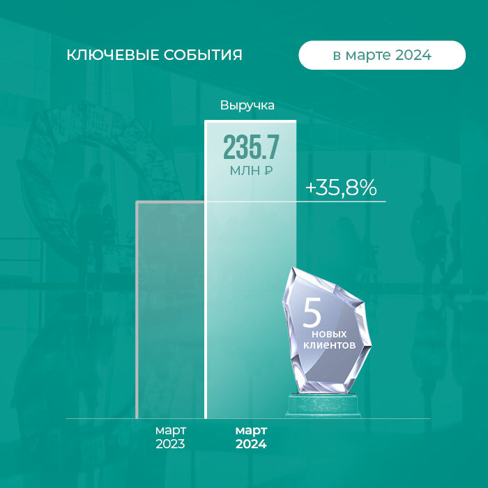 В 2024 г. компания продолжает демонстрировать высокие темпы роста. Как рассказал управляющий партнер Global Factoring Network Алексей Примаченко, в марте выручка компании составила 235,7 млн рублей. Это на 35,8% больше, чем за тот же период прошлого года.