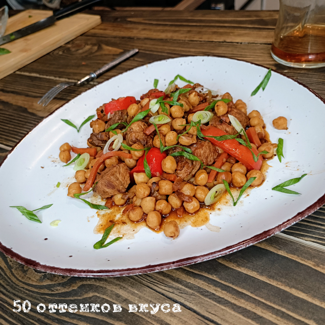 Нут в томатном соусе со свининой. Горох что надо!