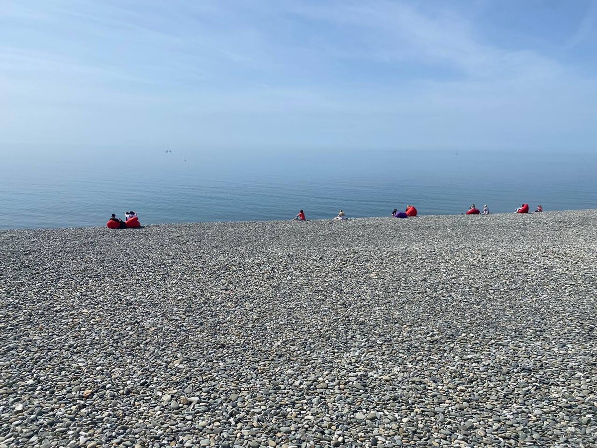 Проснувшись приняли душ и пошли кушать в ресторан, который находится непосредственно в отеле. В ресторане есть как внутренний зал, так и зал с верандой выходящий прям на набережную и в 15 метрах уже море. Перекусив штруделем с малиновым чаем, вышло 800 рублей. После чего решили немного прокатиться на арендных самокатах на другой пляж, по которому ходили собирали ракушки, бросали камни в воду и просто беззаботно болтали.