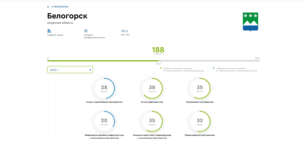 Минстрой России обнародовал итоги формирования индекса качества городской среды за 2023 год. По результатам оценки федеральных экспертов Белогорск вновь вошел в число городов с благоприятной городской средой, перевыполнив собственный план по формированию индекса качества городской среды.