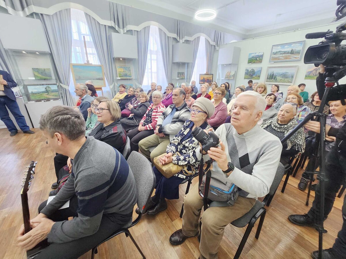 29 марта в Художественном музее в рамках проекта «Музейные пятницы» состоялось музыкальное выступление заместителя главного редактора газеты «Искра» Дмитрия Спиридонова. Наш талантливый коллега своей музыкальной программой «А у меня есть парашют...» собрал полный зрительный зал. Под его шуточные и лирические композиции, исполненные под гитару, присутствующие смеялись и грустили о чем-то своём. Дмитрий Леонидович исполнил песни на стихи, написанные в разные годы. Были и совсем ранние творческие искания, и композиции, навеянные жизненным опытом. О каждой спетой песне была рассказана история создания, а всего их в репертуаре автора около двух тысяч. Если вы ещё не знакомы с творчеством искровца, это можно сделать через его личную страницу ВКонтакте, на портале proza.ru «Дмитрий Спиридонов 3», на канале на Дзене «Чо сразу я-то?» и на видеоплощадке YouTube. Также в этот день состоялась встреча с пермским художником Александром Радионовым, чья персональная выставка «С этюдником по стране» бы