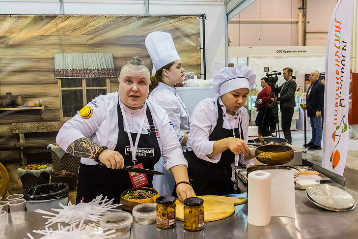 В Новосибирске начал работу Форум сибирского гостеприимства и туризма «Дикоросы». Производители из различных регионов представляют на нём свою продукцию, делятся опытом и разработками, а также активно угощают гостей, демонстрируя разнообразие сибирской кухни. В первый день Форума сибирского гостеприимства и туризма «Дикоросы», который продлится в МВК «Новосибирск Экспоцентр» до 5 апреля, выставку посетил губернатор Андрей Травников. Ему, и другим гостям, участвующим в открытии экспозиции HoReCa Siberia показали, какой продукт можно производить из того, что растёт на сибирской земле. Заготовители представили замороженные ягоды, грибы, чай из сушеных трав, мёд, кедровые орехи и многое другое. Также губернатора накормили «сименухой». Так называется гречневая каша с вареными яйцами, луком и грибами. От окрошки с жареной картошкой Андрей Травников отказался, но всё же отметил оригинальность рецептов, которые кулинары называют чисто сибирскими. В Новосибирск на форум в этом году приехали пре