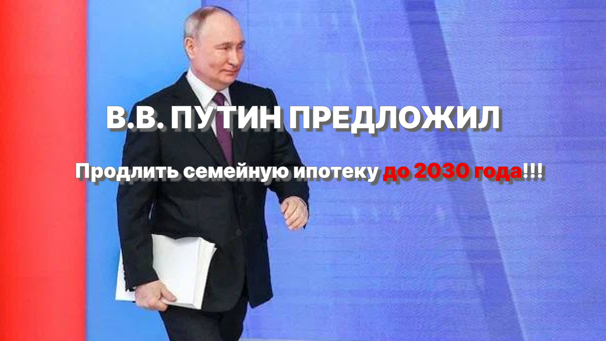 Продолжительность семейной ипотеки в России будет продлена до 2030 года, согласно предложению президента Владимира Путина.