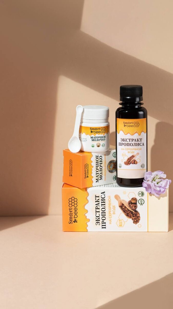 Все продукты пчеловодства сочетаются между собой и не менее прекрасно сочетаются с травами. Так например в Smart Bee появились бальзамы и эликсиры.