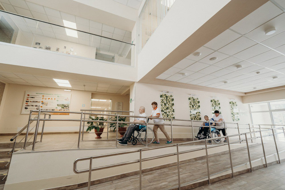 В РЦ «Янтарь» пациенты на инвалидных колясках, а также с нарушением моторных функций легко перемещаются по медицинскому, жилому блоку, выходят гулять на улицу и любуются природой без ограничений.