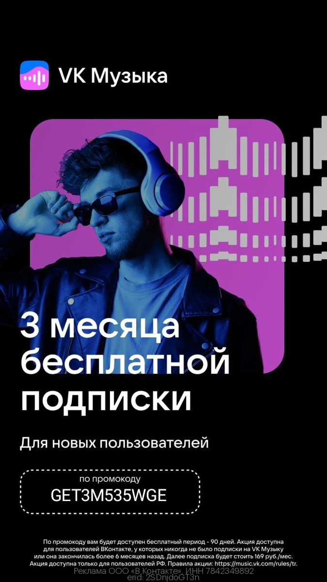 Доступно новым пользователям и пользователям без активной подписки более 6 месяцев. #вкмузыка #музыкабесплатно #подпискавк #музыкавкбесплатно #вкбезрекламы