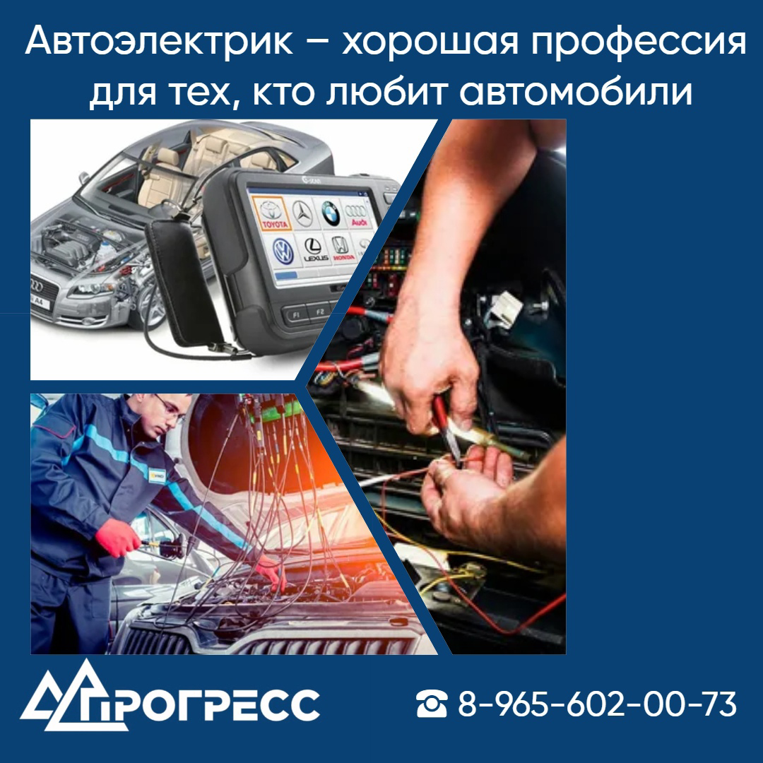 Современные транспортные средства активно оснащаются автоэлектрикой, автоэлектроникой. Автоэлектрики сейчас очень востребованы и эта работа хорошо оплачивается. Учебный центр «Прогресс» предлагает пройти обучение по этой профессии. Автоэлектриком можно работать как в автомастерской, на станции технического обслуживания, так и в частном порядке. Главная задача автоэлектрика – это выявление причин неисправности в системе электрооборудования автомобиля и их устранение. Сейчас появилось специальное оборудование для проведения диагностики автомобиля, которое значительно облегчило работу, но все равно главным фактором является знание своего дела и профессионализм исполнителя Обучение на автоэлектрика подразумевает освоение электронных диагностических систем, сервисного оборудования, широкого спектра приспособлений и инструментов. Обычно к этому добавляются знания по специальности автоэлектронщика, поскольку доля электронных компонентов в автомобилях постоянно растет. Записаться на обу