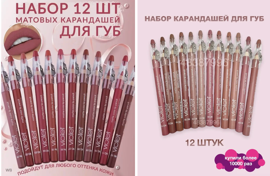 Карандаши для губ в наборе из 12 штук, каждый карандаш для губ - находка для любительниц макияжа. Макияж губ с карандашами нюдовых оттенков давно уже стал трендом. Для каждого карандаша есть своя точилка. Важно не забывать прокрашивать карандашами контур и линию губ перед нанесением помады. Набор карандашей для губ сегодня-Трендовый сет нюдовых тонов, подобранных профессионалами специально для тебя. Цветовая гамма подходит для любого типа внешности, тебе останется только выбрать четкий контур или растушевать. Матовые карандаши для губ имеют мягкий, но прочный грифель, который не ломается и не крошится при нанесении, интенсивно пигментированные цвета, легкую текстуру и стойкую формулу. Идеальный карандаш не смоется с губ от кофе, дождя или другого случайного контакта с водой - ведь он водостойкий! Удобный колпачок-точилка позволит всегда содержать карандаш в боевой готовности. Используя карандаш для губ в повседневном макияже, вы сможете добиться более чёткого и аккуратного контура губ, а также зрительно сделаете их больше. Выберите свои оттенки из 12 ярких модных нюдовых насыщенных оттенков!