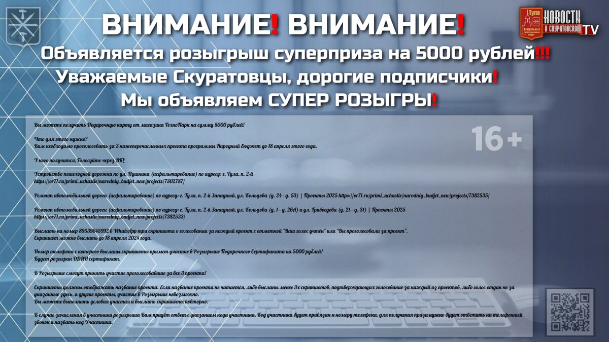В Розыгрыше смогут принять участие проголосовавшие за все 3 проекта!