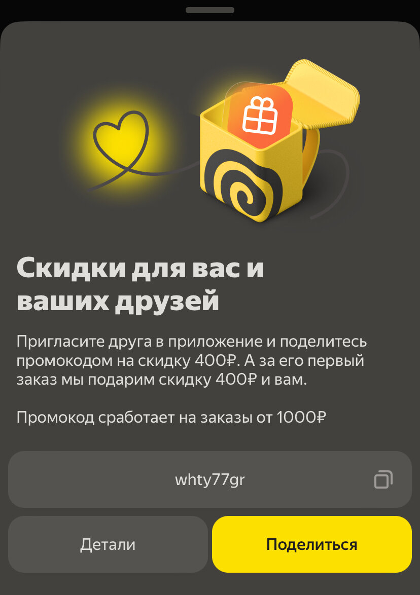 все что нам потребуется - это приложение яндекс еда и новый номер телефона суть абуза - промокод для нового пользователя на скидку, но не все так просто.. да, и в самом деле, кто не знал об этом? но дело в том, что для регистрации нам понадобиться только номер телефона, а его можно купить/арендовать за сущие копейки и проворачивать такие манипуляции можно не только с едой.. например, можно купить виртуальный номер за 20-30р и юзать его на всех сервисах с такими акциями, а это позволит вам заказывать еду, одежду, технику и тд с очень приятными скидками и бонусами! ♥️