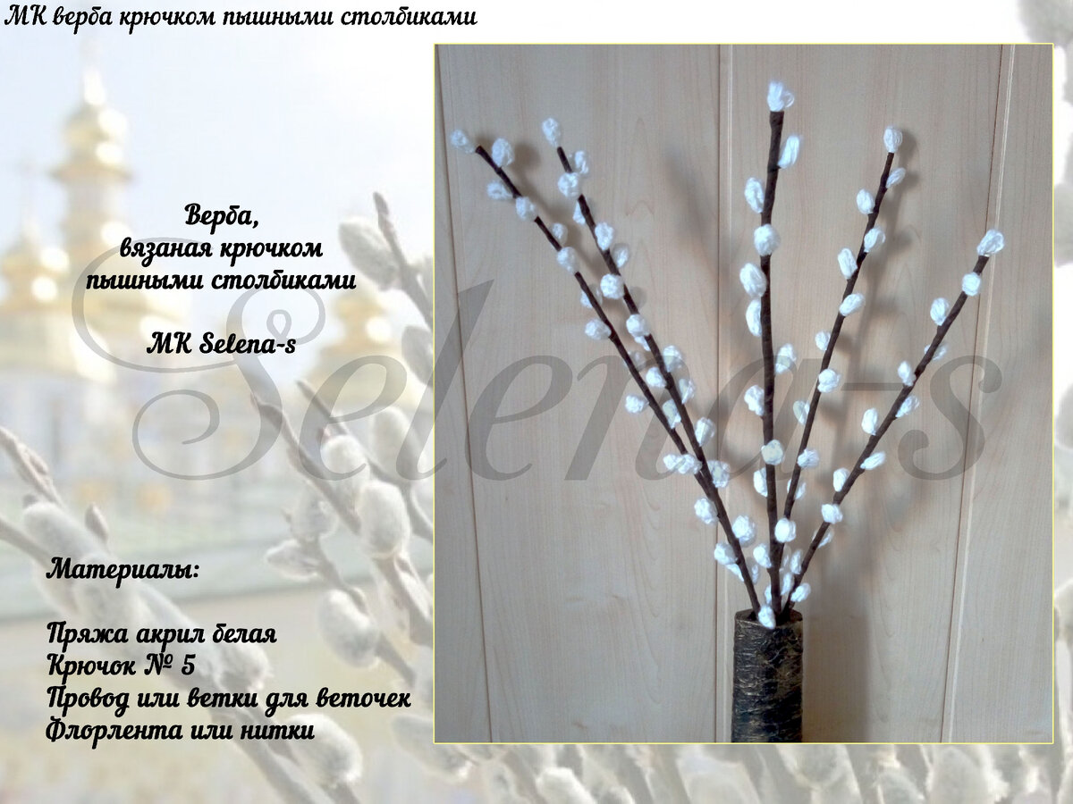 МК Верба, вязаная крючком пышными столбиками