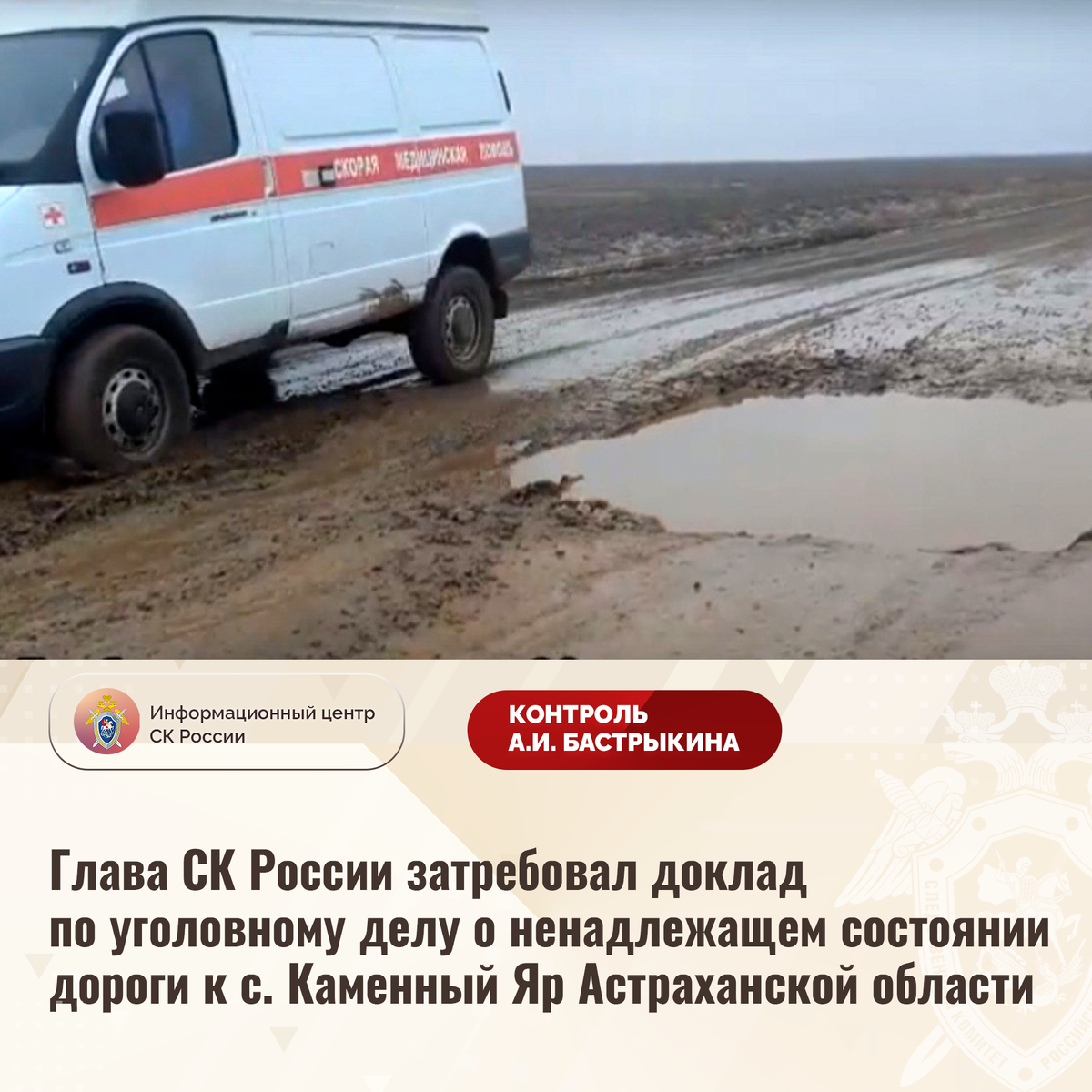 В социальной сети сообщается о ненадлежащем состоянии дороги к селу Каменный Яр Астраханской области. В 2021 году на выделенные бюджетные средства был произведен ремонт покрытия, которое спустя несколько месяцев начало разрушаться. Ввиду многочисленных ям сельчане вынуждены длительное время добираться до мест назначения. Сообщается о гибели местной жительницы в машине скорой медицинской помощи, поскольку из-за неудовлетворительного состояния дороги ее не успели доставить в больницу. До настоящего времени полотно не приведено в нормативное состояние.
