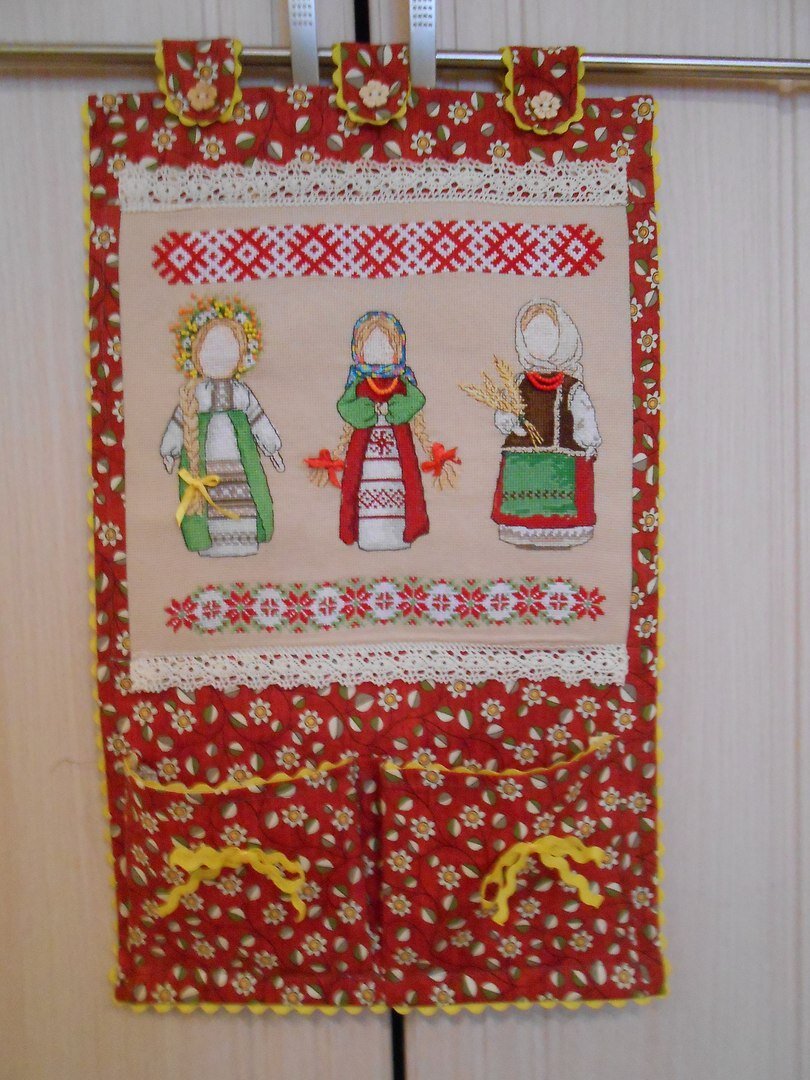 Вышивать в "стол" не люблю, хотя маленький рулончик не оформленных работ имеется, в багетку езжу редко, т.к. она в городе, а живу в поселке, да и далеко не бюджетно нынче рамы выходят ) Как вариант- делать прикладные изделия с вышивкой, например, банеры с кармашками для мелочей. Использовала нашу бязь и отрезы, которые продают в интернет магазинах американского или корейского хлопка. В отличии от наших тканей, они почти не крошатся и не красят при стирке. Как подложка -фетр 2мм-вый, который продается на отрез, дешевле выходит, чем листовой. Для отделки наша тесемка зигзаг, китайские хлопковые кружева. Начало было в 2018 году, когда участвовала в СО "Обережные куклы" Трио Берегини в группе Схемы вышивки Ксении Дмитриевой https://vk.com/cxema_74. Подбор ткани, кружев, украшений - отдельное удовольствие. И результат меня радует ) В прошлом году решила порадовать свекра на День рожденье, оно у него в июне. Он , как и муж , заядлый рыбак, у него куча всяких-яких для удочек, для насадок, и п