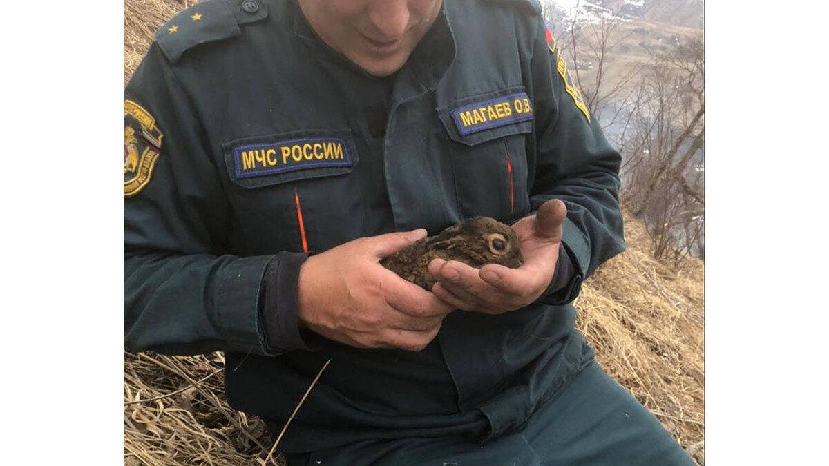 Накануне пожарные МЧС России потушили загрревшуюся сухую траву в североосетинском селе Даргавс. Во время работы огнеборцы увидели в кустах крошечного крольчонка. «Он был один, видимо, когда трава начала гореть остальные крольчата успели убежать, а этот малыш забился в кусты. У него обгорела шерстка. Конечно, мы не могли оставить его», — рассказал командир отделения пожарно-спасательной части № 12 Олег Магаев. Крольчонку требовался уход, и командир части приютил малыша у себя, подлечил и выпустил на волю.Ранее мы рассказывали, как специалисты МЧС спасли крольчонка при тушении пожара в частном секторе под Псковом.