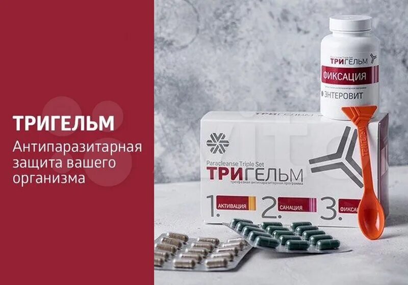 Природная защита против паразитов Миллионы лет паразиты преследовали человека на протяжении всей его жизни. Совершенные механизмы внедрения, жизни и размножения позволяли незваным гостям оставаться в теле хозяина долгие годы. Главными средствами для борьбы с ними были различные травы, позволяющие избавиться от паразитов без сильного стресса для организма. Именно поэтому сегодня природные средства до сих пор успешно используются во всем мире, не уступая по эффективности синтетическим продуктам. Правильная комбинация природных компонентов и комплексный подход позволяют добиться взаимного усиления эффектов без вреда для организма. Именно на этом построена трехфазная антипаразитарная программа «Тригельм». Попрощайтесь с паразитами на раз, два, три...⬇️