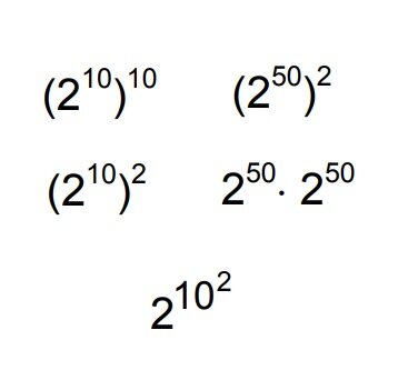 Таким образом, из всех пяти записей числу 2 в степени 100 не равна третья – (2^10)^2.