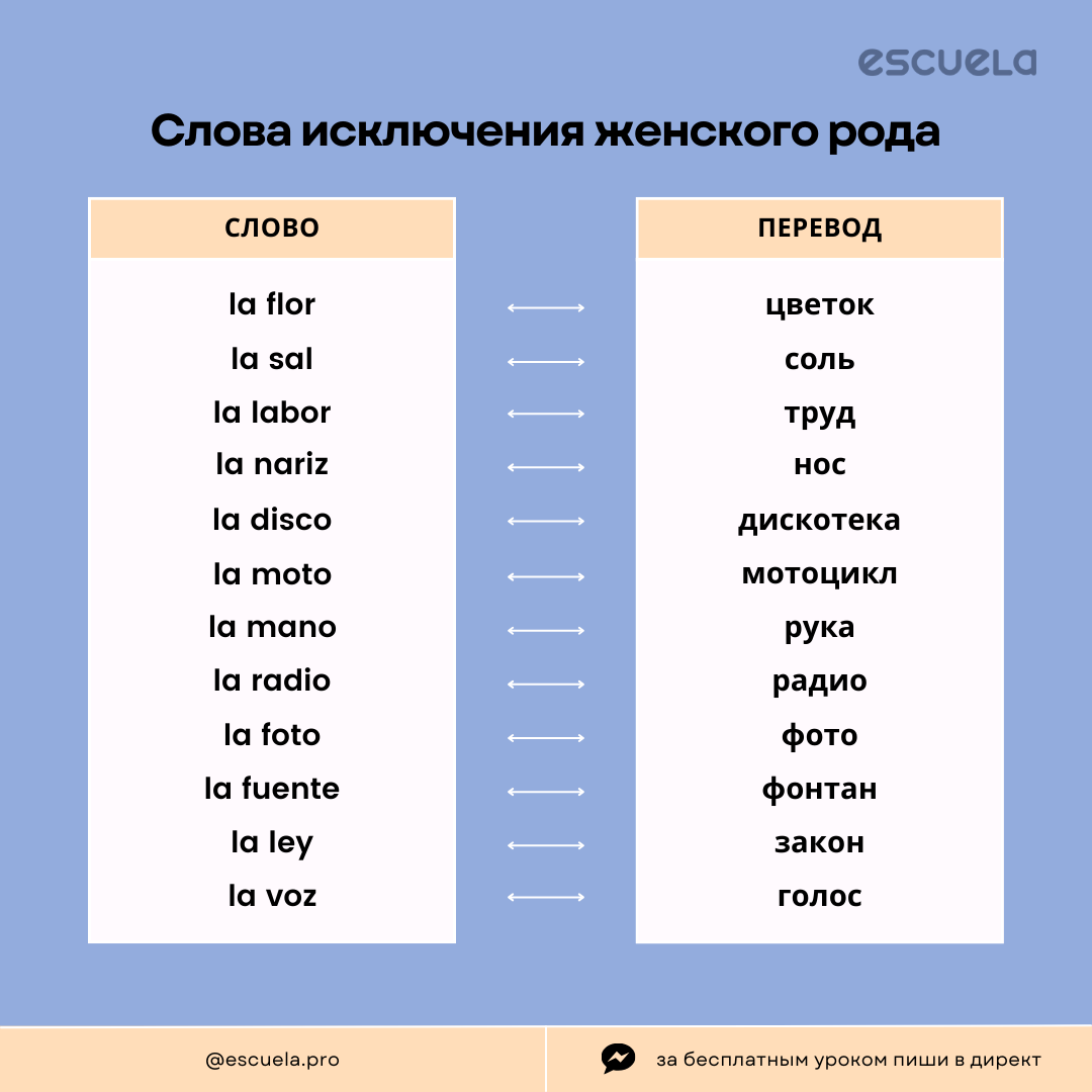 Слова-исключения женского рода в испанском