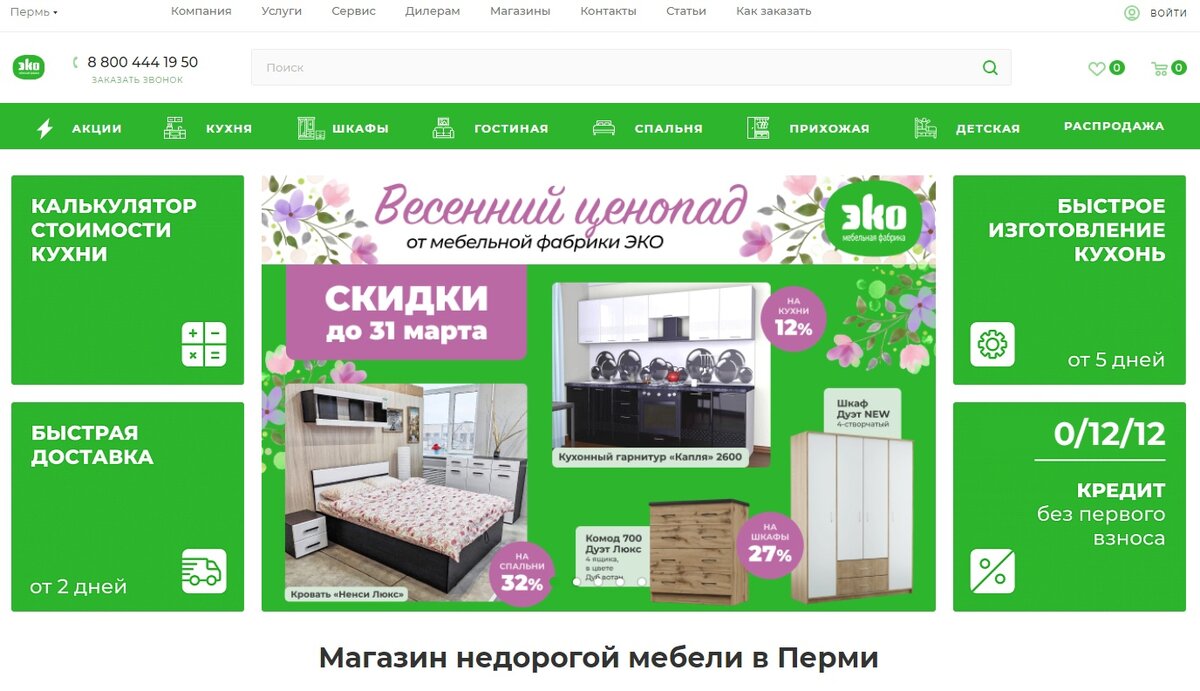 Пермская фабрика ЭКО — крупный производитель мебели. Продукцию этой компании можно приобрести в торговых точках в Пермском крае, Удмуртской республике, Свердловской области и других регионах России. Имеется и собственный интернет-магазин по розничной продаже мебели.
