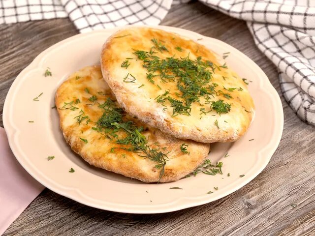 Приготовить простое дрожжевое тесто. Тесто разделить на шарики величиной с грецкий орех и раскатать в лепешки толщиной в 1 мм. Положить начинку. Выпекать в духовке 20-25 минут.