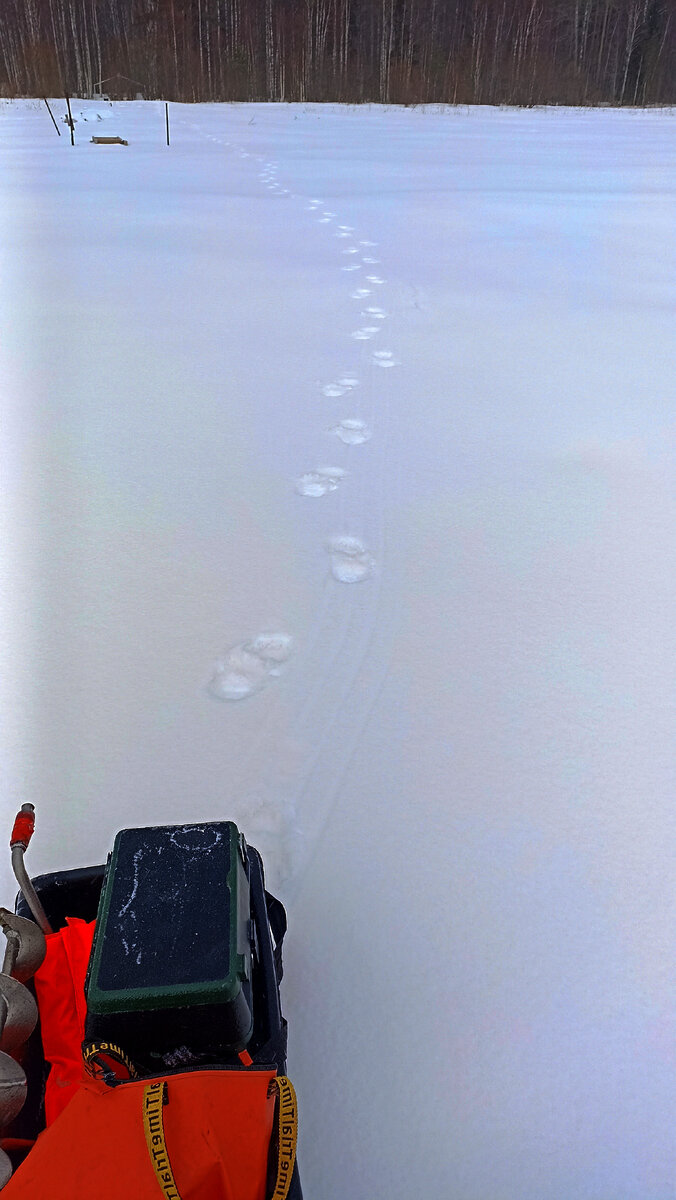 С первой лункой темп выдержал, и предположение про "не клюет" оправдалось. Ко второй перехожу в еще более скептическом настрое, потому что она как раз одна из самых мелких.