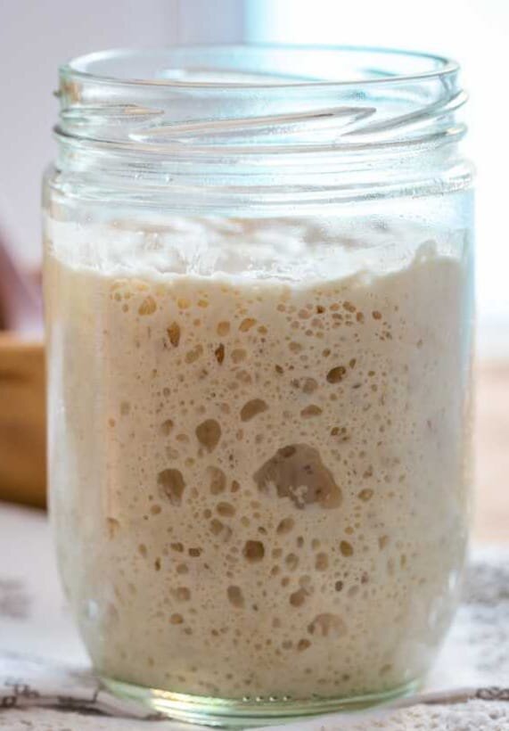 После выведения закваски вы можете попробовать испечь свой первый хлеб. Мой был в принципе съедобен, но не то, что я ожидала. Мне не понравилась ни форма, ни вкус. А вот второй колобок был выше всяких похвал. В любом случае нужно пробовать, работать с тестом, почувствовать. Итак, сначала я кормила закваску в пропорции 100% от закваски: брала 100гр закваски и добавляла 50гр воды и 50 гр муки. Закваску нужно кормить за 7-8 часов до замешивания теста. Возможно это время будет меньше, это зависит от температуры воздуха в помещении, влажности , качества муки и тд. Если вы не собираетесь печь в ближайшее время, закваску можно убрать в холодильник. Но она должна быть тоже предварительно покормлена. Я убираю свою закваску дней на 8-9. Потом достаю, даю постоять при комнатной температуре, чтобы она ожила. Дальше нужно покормить и оставить на 7-8 часов при комнатной температуре. Но не все так просто , как казалось. Я узнала , что закваска бывает разной влажности. 100% влажности, 50 % и тд. Ест