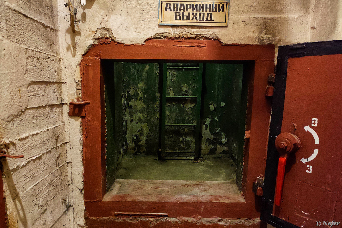 На заглавной фотографии аварийный выход, который предназначен для эвакуации на поверхность в случае разрушения здания над убежищем. Он расположен на расстоянии не менее половины высоты дома. Снаружи это выглядит как вентиляционный оголовок, эдакая будка с решетками и маленькой дверью с одной стороны. Многие из вас видели их, но возможно не задумывались о назначении. А может быть наоборот, пытались вскрыть замок и нелегально спуститься. Ведь любопытно залезть в бомбоубежище.
