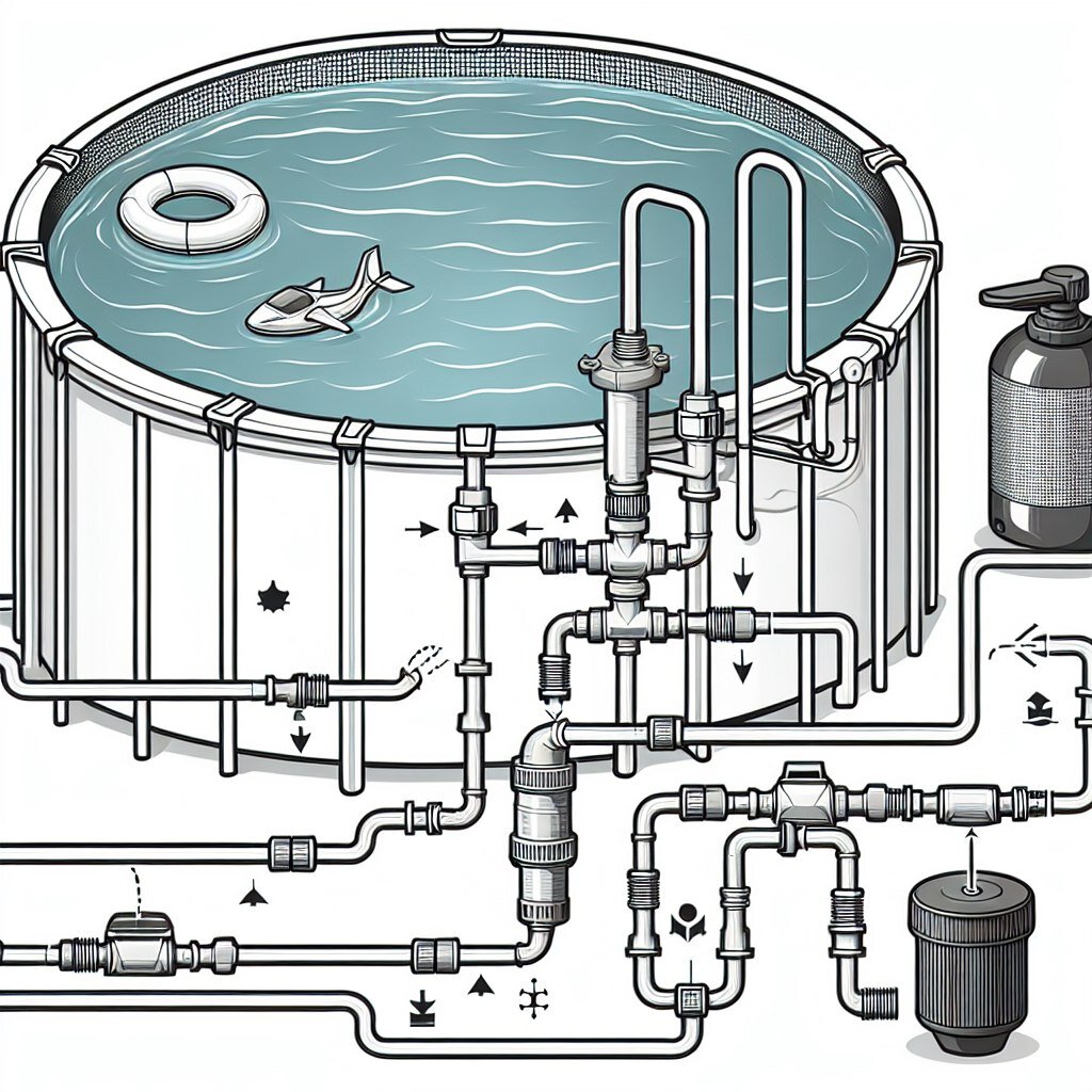 3. Подключение к бассейну: Найдите входное и выходное отверстия на вашем бассейне. Подсоедините шланги от фильтра к этим отверстиям, обычно один шланг идет от насоса к фильтру, а другой возвращается от фильтра к бассейну.