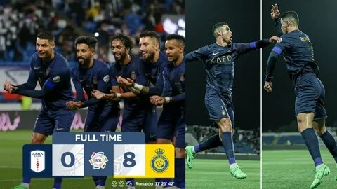 - Первые два мяча в составе «Аль-Насра» на свой счёт записал португальский нападающий Криштиану Роналду Первый гол был забит на 12-й минуте игры, а второй — на 21-й. На 33-й минуте сенегалец Садио Мане забил третий мяч своей команды. На 42-й минуте Роналду оформил хет-трик, а уже через две минуты ассистировал на Абдулмаджида Аль-Сулайхима. На 51-й минуте Абдулрахман Гариб сделал счёт 6:0. На 63-й минуте седьмой гол «Аль-Насра» забил Абдулазиз Аль-Элевай, на 86-й он же оформил дубль.