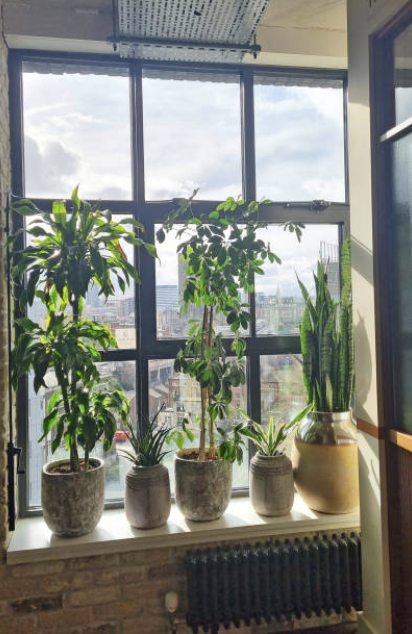 - Фикус: Фикусы отлично растут на подоконнике и производят много кислорода. Они неприхотливы в уходе и могут прекрасно себя чувствовать в условиях недостатка света.