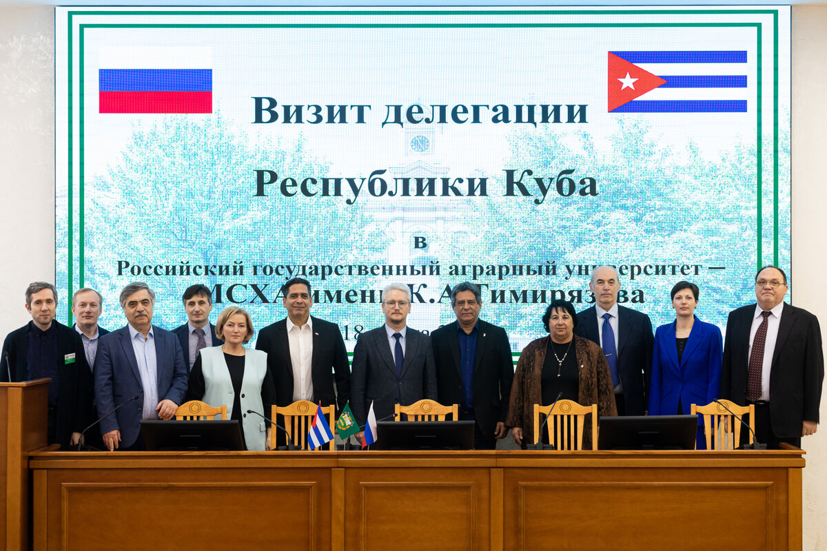 РГАУ-МСХА имени К.А. Тимирязева посетила кубинская делегация во главе с первым вице-президентом группы «Biocuba Farma» и депутатом Национальной Ассамблеи Республики Куба Эулогио Пиментель Васкес. Стороны обсудили возможность реализации ряда научно-исследовательских проектов, а также обучение кубинских граждан на различных направлениях подготовки университета. По поручению ректора, Академика РАН, профессора В.И. Трухачева ведущие тимирязевские ученые провели переговоры с коллегами из Кубы, работающими в Москве в составе межправительственной комиссии Россия - Куба в сфере сельского хозяйства и генной инженерии. Целью визита стало укрепление международного сотрудничества и установления прочных научных связей между учеными. В фокусе обсуждения была научно-исследовательская работа в сфере органического земледелия, генной инженерии, биотехнологии. Специалисты РГАУ–МСХА выразили заинтересованность в качественном приросте числа студентов из Кубы и обучении кубинцев русскому языку на Подготовит
