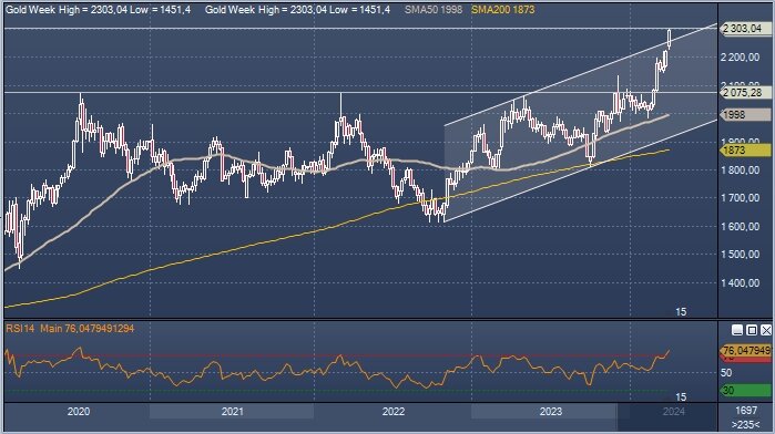 Золото впервые в истории превысило отметку 2300 долларов за унцию