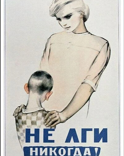В то время, как в капиталистическом мире человек был предоставлен сам себе, советского пропаганда вела гражданина за руку, наставляя, подсказывая и уберегая. Гуманизму в творчестве иллюстраторов и плакатистов посвящается. Секрет нашей цивилизации в том, что каждого человеческого детёныша необходимо обучать и наставлять. Понимание того, что "зя", а что "низя", о добре и зле, правильности и последствиях плохих поступков вдалбываются нам (кому как повезёт) сначала родителями, а потом школой. (у Паганеля очередное обострение, засвербил пыльный педагогический диплом) Детей воспитывали всегда и везде, при любых общественно-экономических формациях. Если в "цивилизованном" обществе учат детей не врать и уступать место старшим (не уверен, что сейчас это в Европе происходит), то, в примитивном, например у папуасов, учат помогать отцу копать яму с кольями и мыть руки перед едой своего врага. Чтобы мамины нравоучения не пропадали даром, умные тёти и дяди решили закрепить их наглядно. Так появился