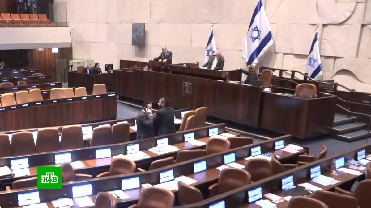 Началось все в смотровой комнате, откуда граждане могут наблюдать за работой парламентариев. Окна, отделяющие их от зала заседаний, активисты измазали желтой краской и начали выкрикивать лозунги против премьера. Они обвиняют Нетаньяху в неспособности освободить заложников.