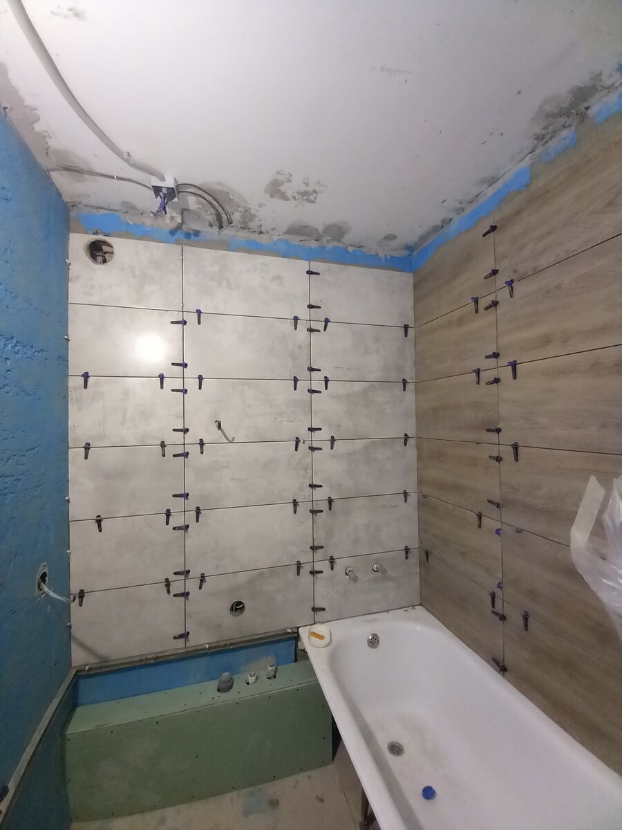 Всем привет! Недавний ремонт подарил мне море полезного опыта. Сегодня покажу вам несколько ошибок, которые легко допустить при первой самостоятельной переделка санузла. Некоторые просчёты я допустил сам, а некоторых смог избежать. Как обычно, покажу свои фотографии. Поехали! ❌Ошибка №1: Разные производители плитки При выборе плитки в магазине лучше останавливайтесь на коллекциях одного производителя. Я же взял керамическую плитку под бетон размером 30х60 от одного производителя, а керамогранит под дерево размером 30х60 другого производителя. На деле оказалось, что плитка и керамогранит на долю миллиметра отличаются в длину и ширину. Облицовка производилась с использованием одинаковых СВП с 2-мм швом. Первый ряд укладывался по лазеру, а вот наверху эта разница накопилась и вышло такое: ✅Решение №1: Старайтесь брать одну коллекцию или ректифицированную плитку (она очень точно подрезается после обжига). ✅Решение №2: Если объём работы небольшой, можно разницу в плитках уменьшить при помощ