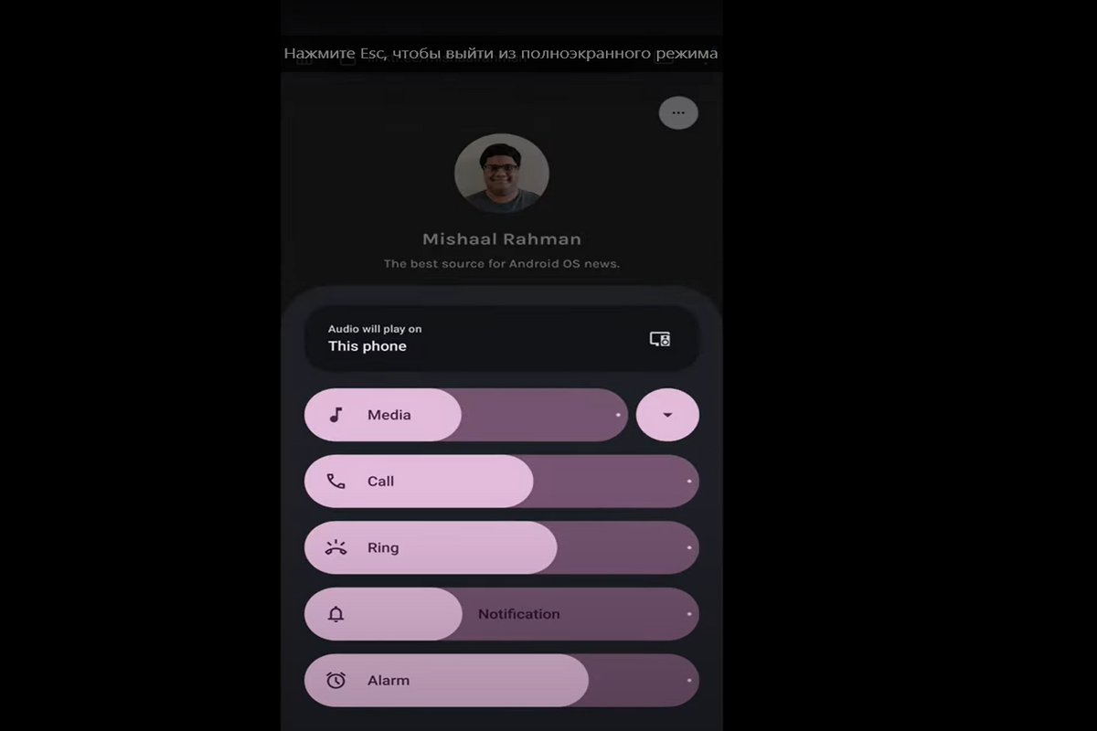 В новой версии Android 15 Google намерена радикально изменить панель управления громкостью. Это изменение было обнаружено в бета-версии Android 15 Developer Preview 2. С момента девятой версии Android дизайн панели громкости оставался неизменным, несмотря на внедрение нового стандартного дизайна Google Material You в Android 12 в 2021 году. В новой версии сохранится базовая концепция с пятью ползунками для регулирования различных аудиопотоков: вызовы, мультимедиа, уведомления, звонки и будильник. Однако изменения включают увеличение толщины ползунков для повышения удобства использования. Также будет добавлена функция, позволяющая сворачивать или разворачивать панель громкости с помощью кнопки рядом с ползунком мультимедиа. При активном воспроизведении мультимедиа панель будет автоматически сворачиваться. В новой версии будет отсутствовать раздел «звук и вибрация», который заменят на постоянный ярлык вывода мультимедиа. Этот ярлык предназначен для отображения активного аудиоустройства в