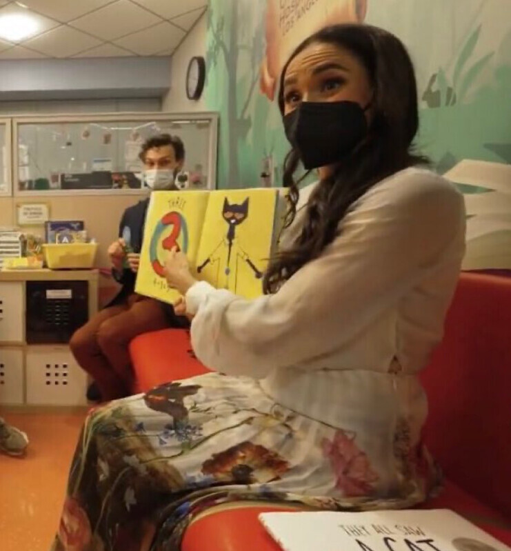 Меган Маркл накануне опубликовала фото и информацию о том, как она 21 марта посетила детскую больницу Лос-Анджелеса с благотворительной миссией: почитала госпитализированным ребятишкам сказки.