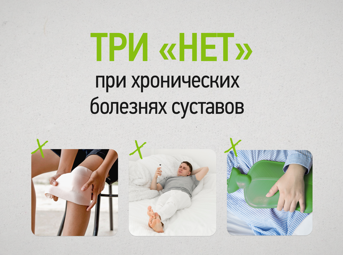 Как обычный человек реагирует на боль в суставе? Хочет больше лежать, погреть сустав грелкой, а, как отойдет — обмотать бинтом. А вы знали, что делать это категорически запрещено! Разбираемся в этих трех «нет» при суставных болях. НЕ ГРЕТЬ Нет уверенности, что воспаление отсутствует — не прогревайте сустав. Кто бы что не говорил (кроме врача на очном приёме, разумеется), какой бы мудрый гуру из интернета не советовал бы грелку. Прогревание может сначала снизить боль, но впоследствии усилить отёк и течение заболевания, попутно вызвав кучу осложнений. НЕ ЛЕЖАТЬ (всё время) Вроде логично — когда болит, ложимся в кровать. Но это не всегда работает. Например, при остеоартрозе боль возникает при начале движения и уходит, когда человек перестает двигаться. В результате это приводит к снижению ежедневной активности, усиливается желание отдыхать больше и двигаться меньше. Однако именно движение помогает поддерживать здоровье и гибкость суставов, укрепляет окружающие их мышцы и улучшает кровообр