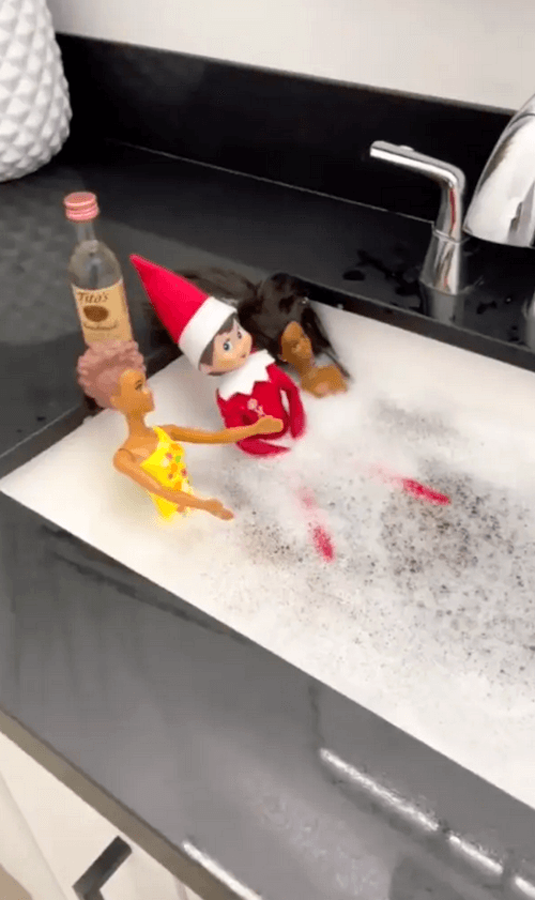 Перед рождеством родители рассаживают по комнатам игрушечных эльфов, поручая им следить за детьми. Под таким присмотром малыши стараются вести себя хорошо, поскольку знают: если будут хулиганить, Эльф доложит об этом Санта-Клаусу. На этот раз Эриса Ласка из Невады (США) поручила мужу пристроить эльфа на кухне, и мужчина постарался от души. Он организовал эльфу настоящую рождественскую вечеринку - "с алкоголем и девочками". В результате все семейство полюбовалось на старания папы - довольный эльф с двумя красотками возлежал в кухонной раковине, наполненной пеной, а рядом стояла бутылочка с алкоголем. Выглядело это впечатляюще, и Эриса не знала, рассмеяться ей или рассердиться: ведь подвыпивший эльф, который нежится с дамами в ванне - не лучший пример для детей. И уж точно ему некогда следить за их поведением... В результате мать семейства сделала вывод, что муж больше никогда не будет ответственным за эльфов. * * * ВНИМАНИЕ!