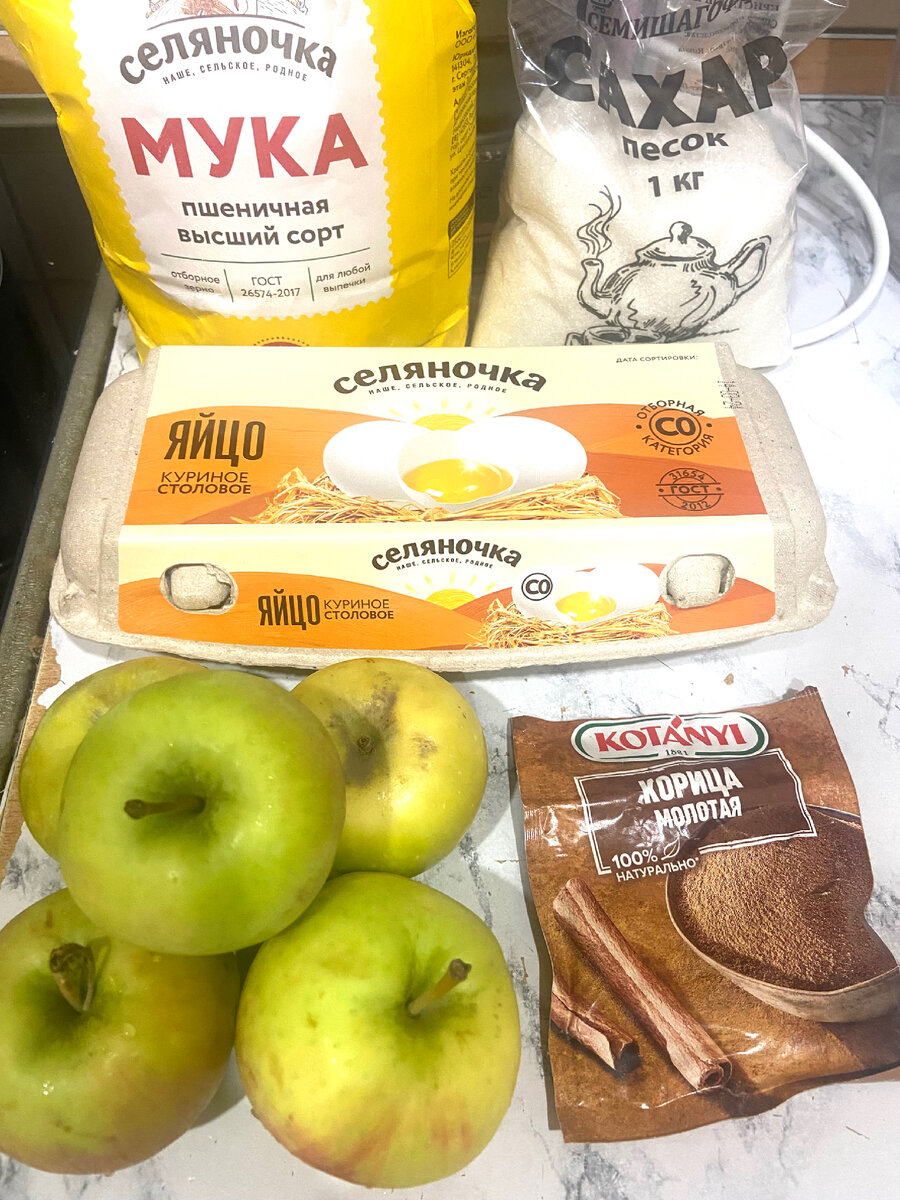 Рулет с яблоками и корицей, это очень быстро, вкусно и не дорого. Самые простые продукты, которые всегда есть дома. Яблоки - 5-6 шт или 600гр Корица - 1 ст л или по вкусу Яйцо - 4шт Сахар - 175 гр (125 гр в тесто, 50 в начинку, можно меньше зависит от сладости яблок, чем слаще, тем меньше сахара) Мука - 180гр Начнем с яблок. Очищаем яблоки от кожуры и сердцевины. Очищенные яблоки натираем на мелкой терке. Добавляем сахар и корицу. Перемешиваем и оставляем, займемся тестом. В глубокую миску вбиваем 4 яйца и добавляем сахар. Взбиваем до растворения сахара. Добавляем просеянную муку и хорошенько перемешиваем, я это делаю миксером. Берем противень, застилаем бумагой для выпечки, сверху на бумагу выкладываем начинку из яблок. Сверху покрываем тестом. Разравниваем тесто, чтобы покрыло начинку и отправляем в предварительно разогретую духовку на 180 гр. Выпекаем 15-20 минут, тут индивидуально, зависит от духовки. Проверяем готовность бисквита, шпажкой или зубочисткой. Готовую выпечку достаем,