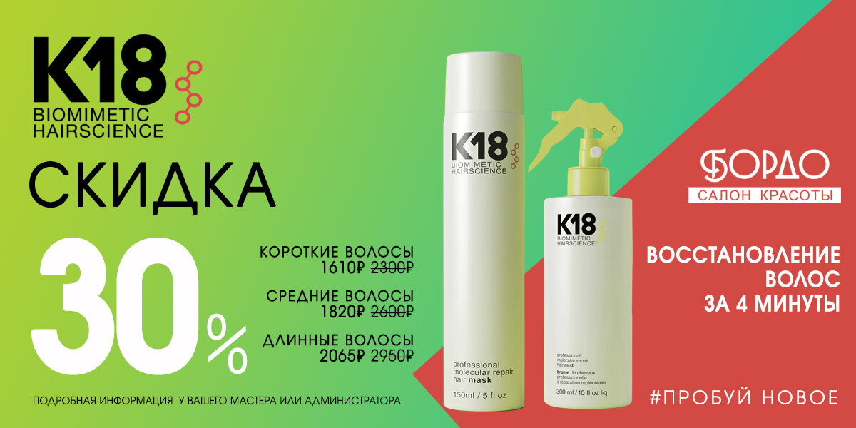 ВОССТАНОВЛЕНИЕ ВОЛОС ЗА 4 минуты с помощью запатентованного сервиса для волос К18 по роскошной цене!