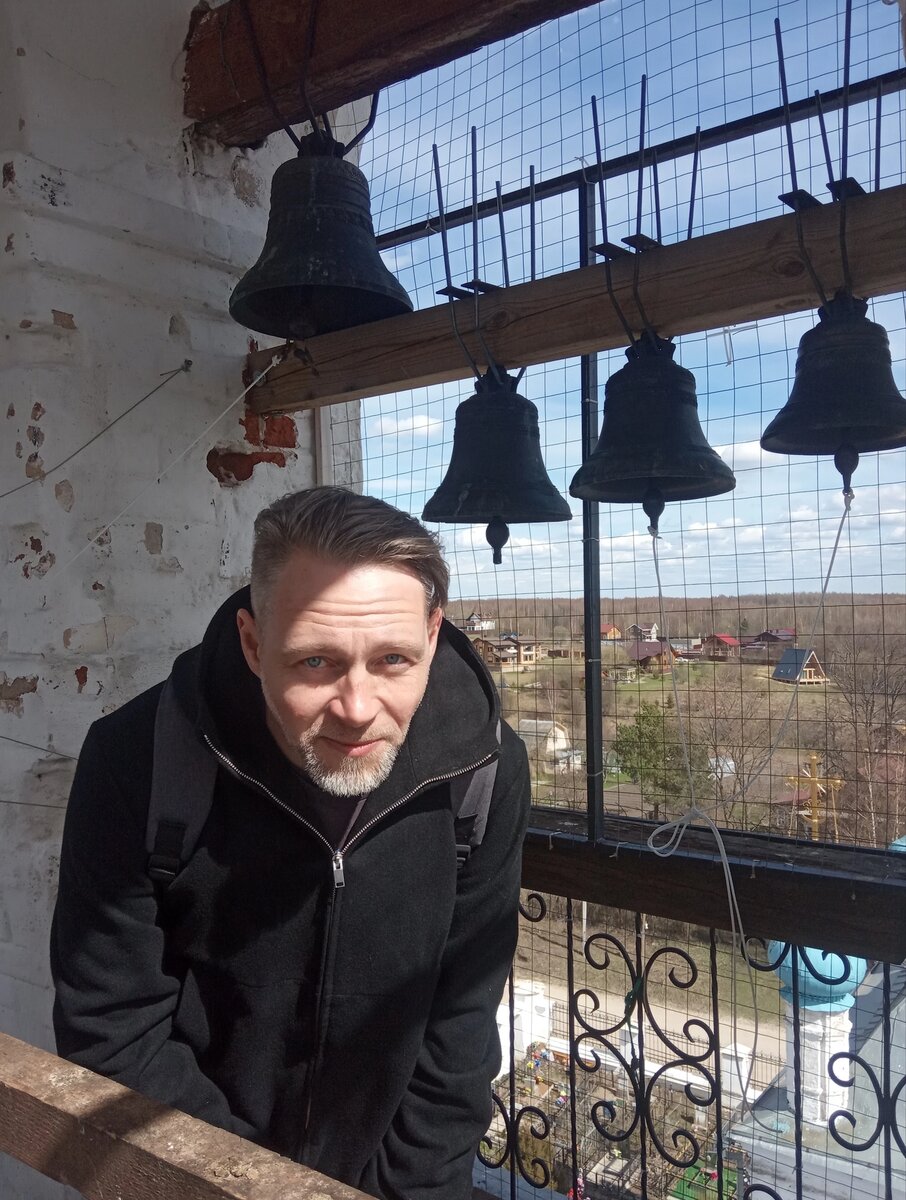 Пройдя по всем иконам и храмам внутреннего двора, я сел на солнышке на площади, что у подножия колокольни. С крыльца её скоро сошёл улыбчивый мирянин и стал набирать себе в помощь из прохожих всех, кто мог бы ему помочь. Он звал раскачать колокол, самый большой колокол в России.