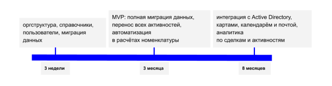 Результат: переезд с Microsoft Dynamics CRM за 3 недели, MVP за 3 месяца