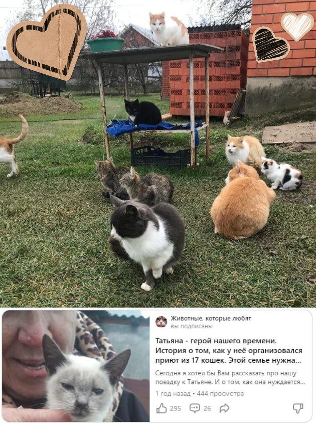 В семье Татьяны 12 питомцев, 12 детей. Живет Татьяна с мужем в деревне в 50 минутах от ближайшего города. В их деревню приезжают много дачников на сезон. Приезжая на дачу на все лето, семьи с детьми охотно заводят пушистого друга, но вот нести за него не ответственность после дачного сезона оказываются не готовы. В этот момент в жизни этих кошек появляется своя "Мать Тереза". Первая статья о «приюте Татьяны» появилась на канале 03.11.22. Прошло полтора года и ежемесячно помогать нашим бездомным котикам стало традицией нашего канала. За это время мы пристроили более 10 животных из приюта в новые семьи. Ежемесячно мы привозим Татьяне все необходимое, как и в прошлом месяце мы позаботились о защите от блох и клещей для обитателей нашего приюта. Мы всегда находились рядом, когда кошкам нужна была помощь. Так произошло и сейчас. Две кошки забеременели и к началу следующего месяца принесут потомство. До этого за полтора года только одна кошка окотилась, что не вынуждало нас поднимать во