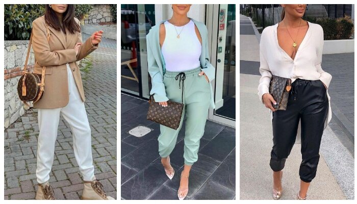 Сегодня мы постараемся объяснить на наглядных примерах, с чем носить стильные женские джоггеры, чтобы выглядеть на все 100%. Джоггеры являются не только стильной вещью, но также и достаточно комфортной в носке. Также к достоинствам можно отнести их фасон, который выигрышно скрывает недостатки фигуры в области бедер и талии. Резинка, расположенная внизу штанины визуально делает щиколотку изящной, а ножки более стройными и длинными. Перед вами гармоничный образ, который под силу составить каждой моднице без исключения, он включает в себя объемную толстовку, брюки джоггеры колоритного цвета, а также изящные женственные босоножки с тонкими перемычками. Благодаря высокой посадке джоггеры можно без особого труда комбинировать с однотонными стильными кроп-топами, босоножками или же громоздкими ботинками на шнуровке. Меховая верхняя одежда также успешно впишется в каждый из этих луков. Неоново-розовые джоггеры + розовый яркий топ + белоснежная водолазка + цветные кроссовки — отличный набор вещ