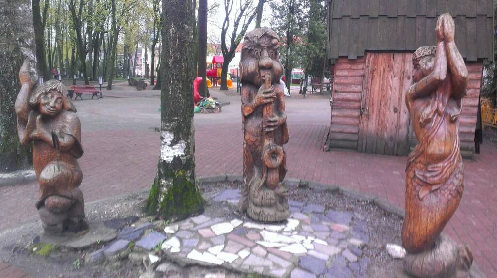 Время и погода не щадят деревянные скульптуры в уникальном парке имени А.К. Толстого в Брянске. Напротив фонтана «Водяная мельница», где воду на колесо с лопастями льют уже давно не черти, долгое время радовало глаз музыкальное трио: Водяной играл на саксофоне, а Кикимора и Русалочка в такт музыке танцевали.