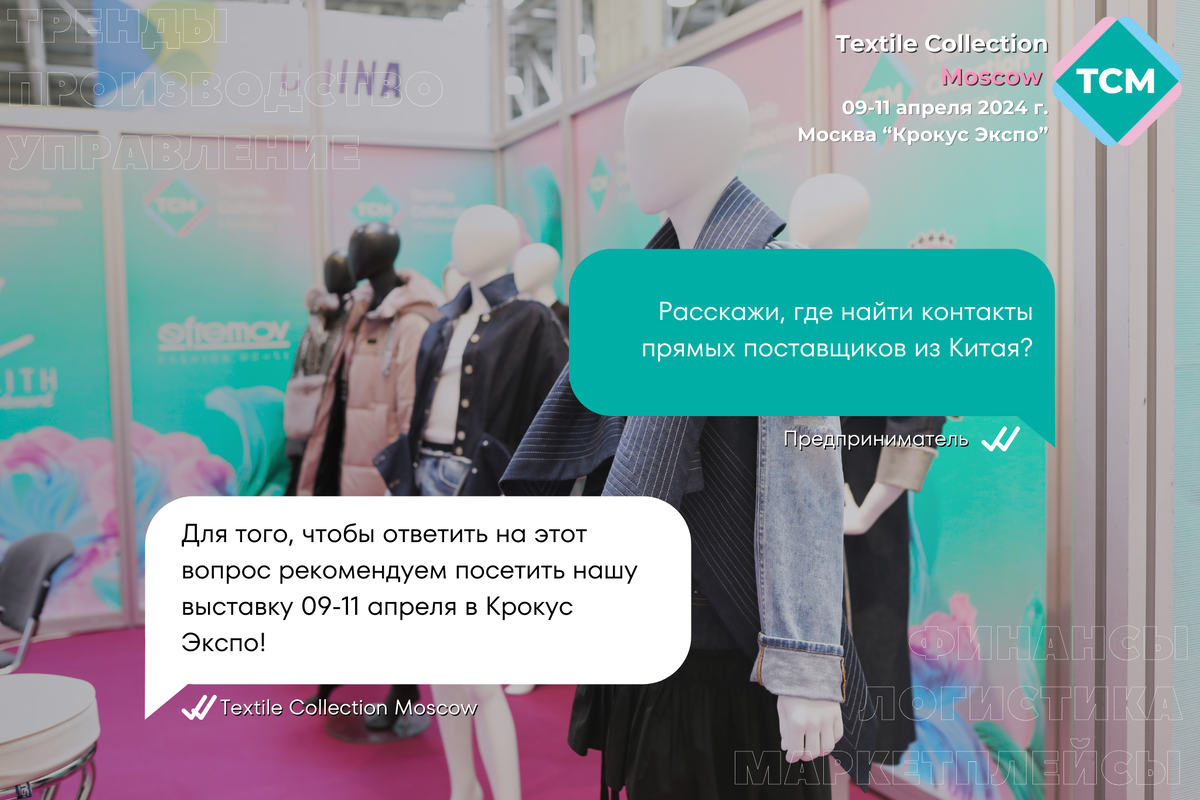 Прямые поставщики одежды из Китая, аналитические, логистические и сервисные компании, насыщенная деловая программа, обсуждение актуальных трендов e-commerce рынка и многое другое ждут вас 09-11 апреля в МВЦ "Крокус Экспо".