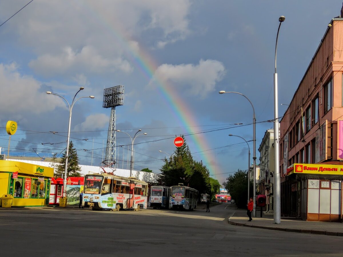Это был 2017 год. Красоты наснимала, налюбовались. Доехали до Елыкаево(с друзьями ходила) и пошли в сторону Томи, прошли по ул. Тепличная, далее вдоль поля и свернули к заброшенному зданию насосной для полива полей, там по дорожке, вдоль речушки Помышлёнки, дошли до озера Маховое(женщина в деревне сказала) ....дальше никак))) Через реку никак, обошли где можно, но, увы! Зато нашли дорогу на Елыкаево вдоль Томи, а там Металлоплощадовский водозабор, где в давние времена была пристань, паромы ходили. Оттуда уже до остановки. По пути попался котёночек, вылез со свалки, дошёл с нами до домов, а коршун его "пас". Кружил и кружил, из дома вышла женщина и я попросила взять котика. Она взяла, сказала выходит(глазик у него) Авось выживет малой. Погодка сегодня озверела, слегка - дождик и порывистый ветер. Изначально было тепло, выйшла на улицу, вернулась, взяла плащ(авось и сгодился))) Когда появилась радуга, подул ветер и полил дождь. Но это нас не остановило. Доехали до дер. Красная(конечная